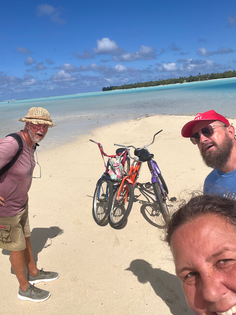 Yhtenä päivänä Sami kävi kävelyllä ja kiipesi Maupitin huipulle. Me mentiin snorklaamaan mantojen kanssa. Sami oli nimittäin kertonut ko. kävelyn olevan kovin jyrkkä - sellainen tosiasia ei houkutele korkeanpaikankammoista Valia. Toisena päivänä otettiin sitten pyörät koko porukka ja päästiin Maupitin legendaarisemmille rannoille.