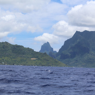 Suunnittelimme kävelyreissua maihin, mutta koska saarella oli denguekuumetta, päätimme pysyä poissa metsästä. Mo’orealla oli myös hienoja vuoria. Se oli selkeästi korkeampi atolli kuin muut, joilla tulisimme matkan aikana vierailemaan. Tahitilla on myös vuoria, mutta se on vähän matalampi kuin Moorea tai ainakin onnistuu antamaan sellaisen kuvan itsestään.